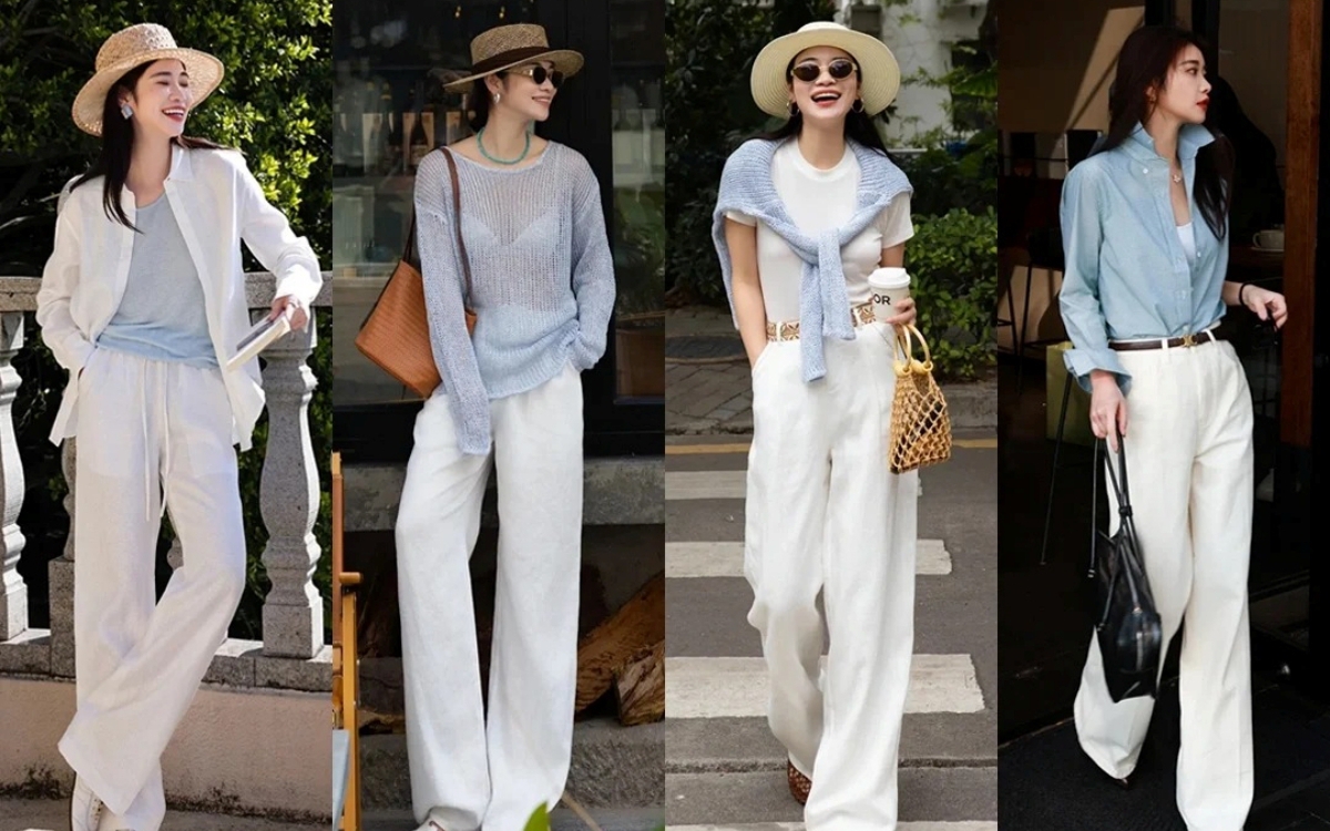 Điểm thú vị là những set đồ này không mang cảm giác “ăn diện”, mà thiên về tinh thần nghỉ dưỡng, kiểu đẹp rất tự nhiên, rất “old money”.